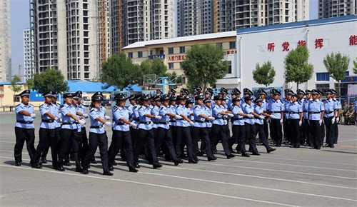 國歌奏響,全場莊嚴而肅穆。經(jīng)過軍訓(xùn)洗禮的新生,精神飽滿、軍姿威嚴、隊列整齊的樹立于操場,嘹亮的口號響徹校園上空。提前批一區(qū)隊、二區(qū)隊依次進行了隊列表演。他們步伐矯健、士氣昂揚,充分展示了東營金盾司法學(xué)校新學(xué)子朝氣蓬勃、奮發(fā)向上的精神風(fēng)貌。