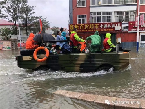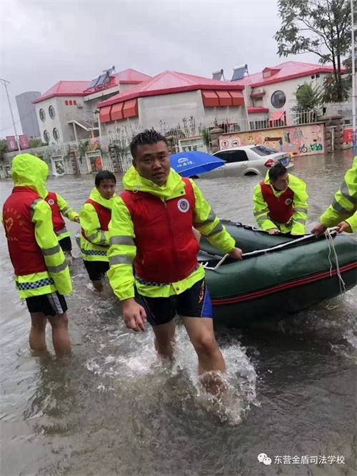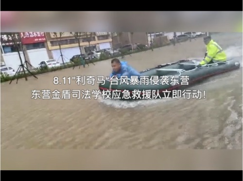 8月11日,在第9號臺風(fēng)“利奇馬”的影響下,東營已經(jīng)歷了長達一天一夜的暴雨侵襲,部分主干路及居民小區(qū)都被積水浸泡,有居民被困家中,暴雨的肆虐嚴重威脅了人們的生命和財產(chǎn)安全。東營金盾司法學(xué)校參與救援。