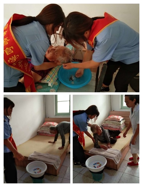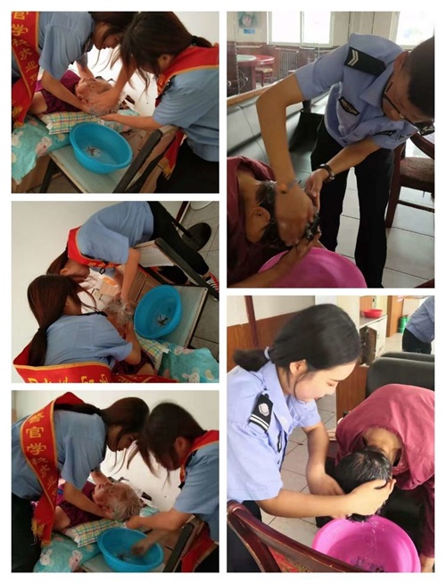 在敬老院中,志愿者們毫不嫌臟。耐心、仔細(xì)地幫助老人們洗腳、洗頭發(fā)、剪指甲。這些都讓同學(xué)們體會(huì)到了老一輩的孤獨(dú)、現(xiàn)在大家的幸福和自私。在那里盡同學(xué)們可能地多和老人聊天、談心,竭盡所能使老人感到溫暖。秦皇島山海關(guān)司法警官職業(yè)培訓(xùn)學(xué)校的學(xué)生們還幫助敬老院的職工一起打掃敬老院。雖然都滿頭大汗,但心里很高興,因?yàn)榇蠹倚睦锒加幸还勺院栏?。而這種自豪感不是在學(xué)校里能夠體會(huì)到的。