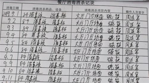餐廳消毒記錄表