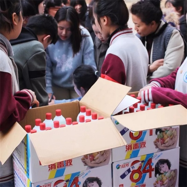 最后,各個班級、宿舍、辦公室領取了84消毒液,對學校每個地方進行全面的消毒,避免任何交叉?zhèn)魅镜臋C會,保障師生們的健康。