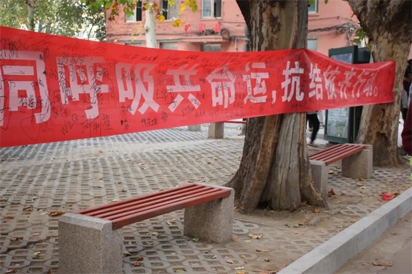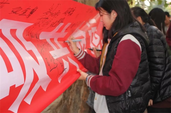 通過醒目的條幅簽字方式,讓同學們意識到抗結核不是說說而已,而是要付諸行動。同學們也紛紛向前寫下自己的名字,發(fā)表自己的決心。預防肺結核,從身邊小事做起,從你我做起。