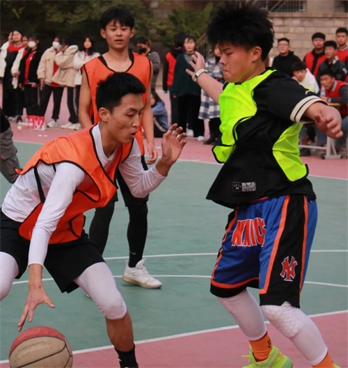 濟(jì)南應(yīng)用技術(shù)職業(yè)中等專業(yè)學(xué)校籃球賽經(jīng)過20場(chǎng)層層角逐,南北兩校選出兩組最優(yōu)隊(duì)員進(jìn)行校??倹Q賽比拼。10月28日下午,郭謙校長(zhǎng)的首開球?yàn)樽罱K的角逐拉開了序幕。