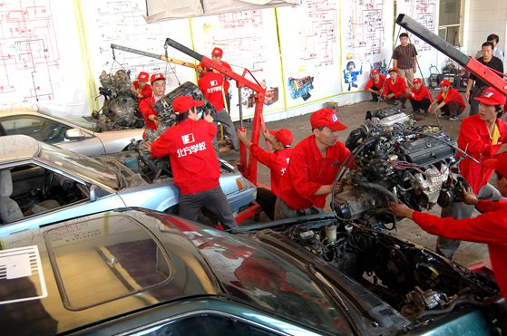 北方汽修學(xué)校發(fā)動(dòng)機(jī)組裝