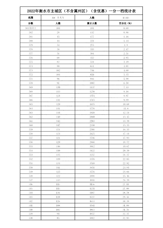 • 2022年衡水市主城區(qū)(含優(yōu)惠)一分一檔統(tǒng)計表(不含冀州區(qū))