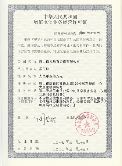 唐山創(chuàng)元教育咨詢有限公司成立于2009年,公司坐落于河北省唐山市高新技術(shù)開發(fā)區(qū)冀東新聞中心,是一家以教育信息服務(wù)、數(shù)字化平臺建設(shè)、職業(yè)技能提升培
