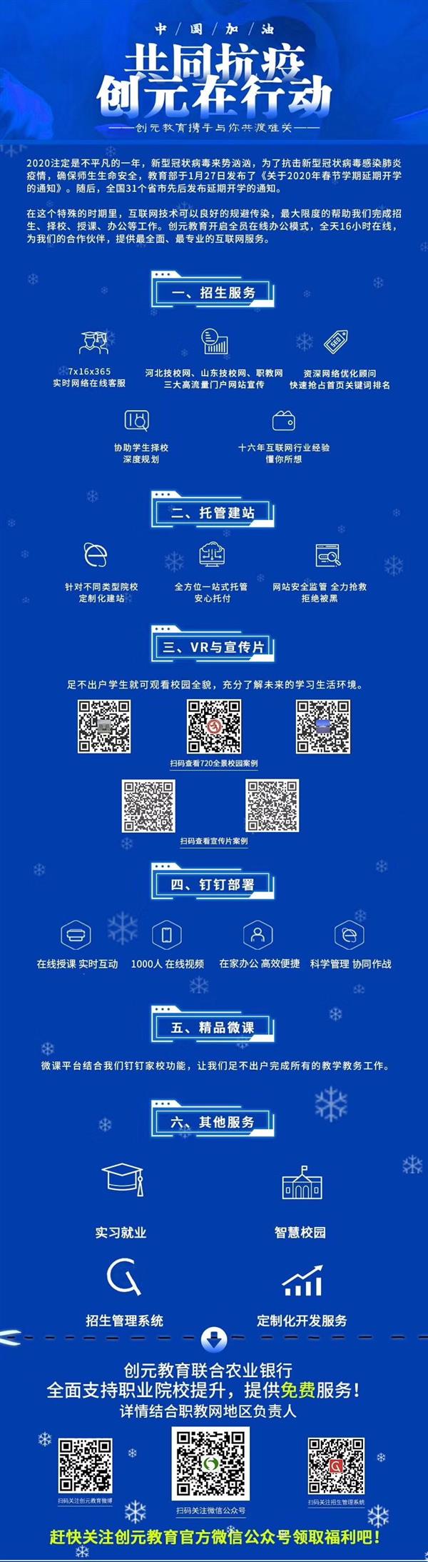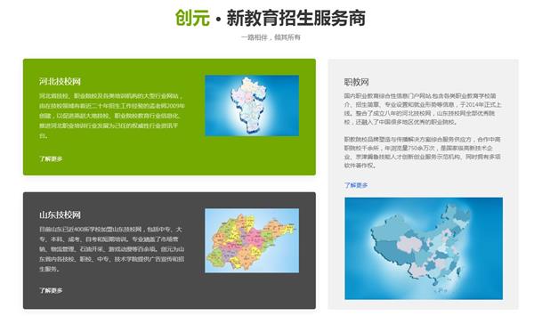 創(chuàng)元教育是權(quán)威的職業(yè)院校綜合服務(wù)平臺,是京津冀魯職業(yè)教育信息服務(wù)者。線上招生服務(wù)可以說是創(chuàng)元教育引以為驕傲的服務(wù)之一,也是主打服務(wù),有著非常