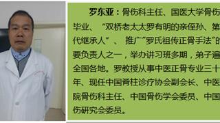 羅東亞:骨傷科主任、國醫(yī)大學(xué)骨傷系畢業(yè)、“雙橋老太太羅有明的親侄孫、第七代繼承人”、 推廣"羅氏祖?zhèn)髡鞘址?的主要負責(zé)人之一,舉辦講習(xí)班多期,弟子遍及全國各地。羅教授從事中醫(yī)正骨專業(yè)三十余年、現(xiàn)任中國脊柱診療協(xié)會副會長、中醫(yī)醫(yī)院骨傷科主任、中國骨傷學(xué)會委員、中國骨傷研究會委員。